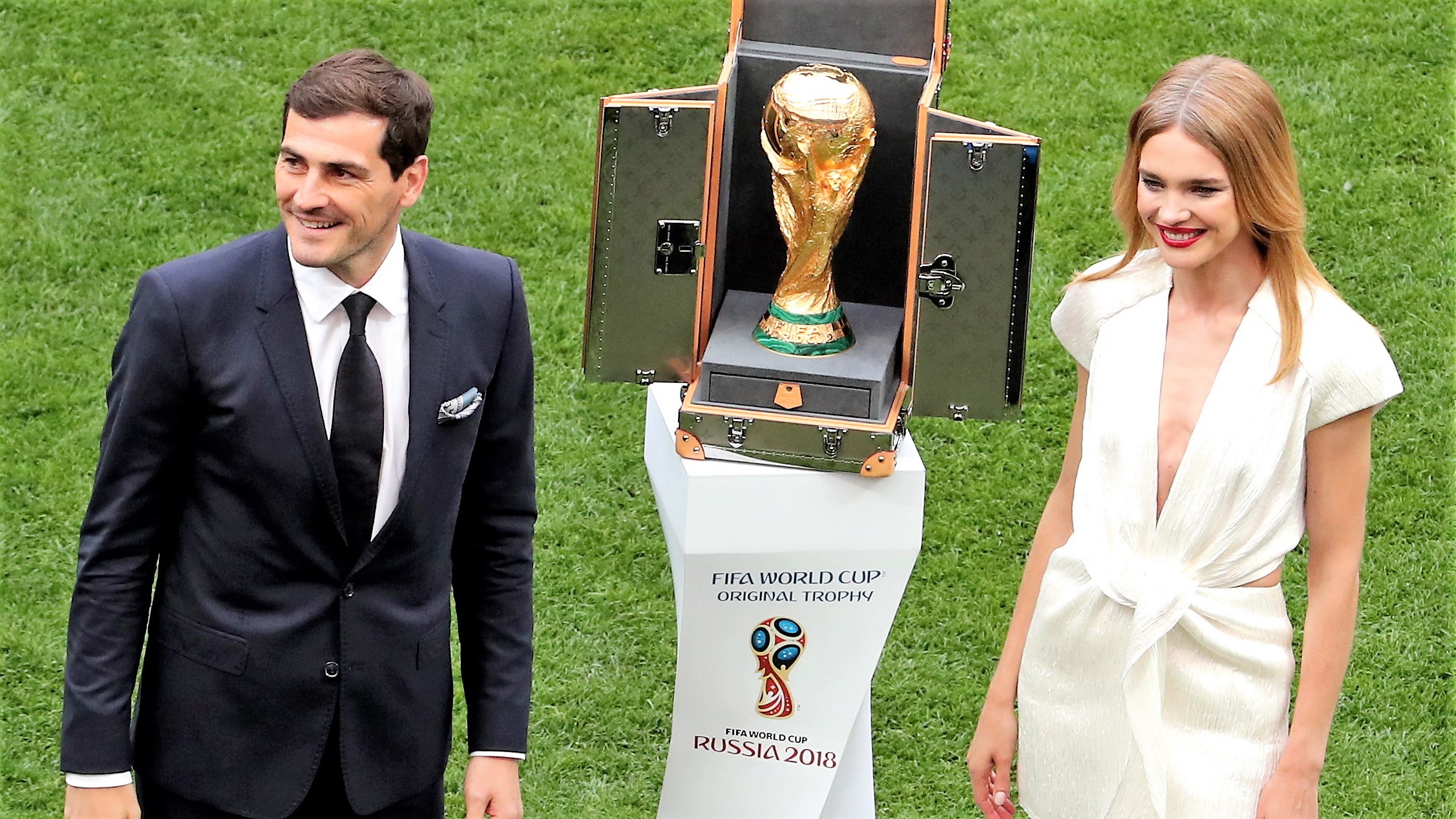 El que fuera portero titular de la Selección presentó en el terreno de juego del estadio Luzhnikí el trofeo de la copa del mundo, minutos antes del inicio de la ceremonia inaugural del Mundial de Rusia.