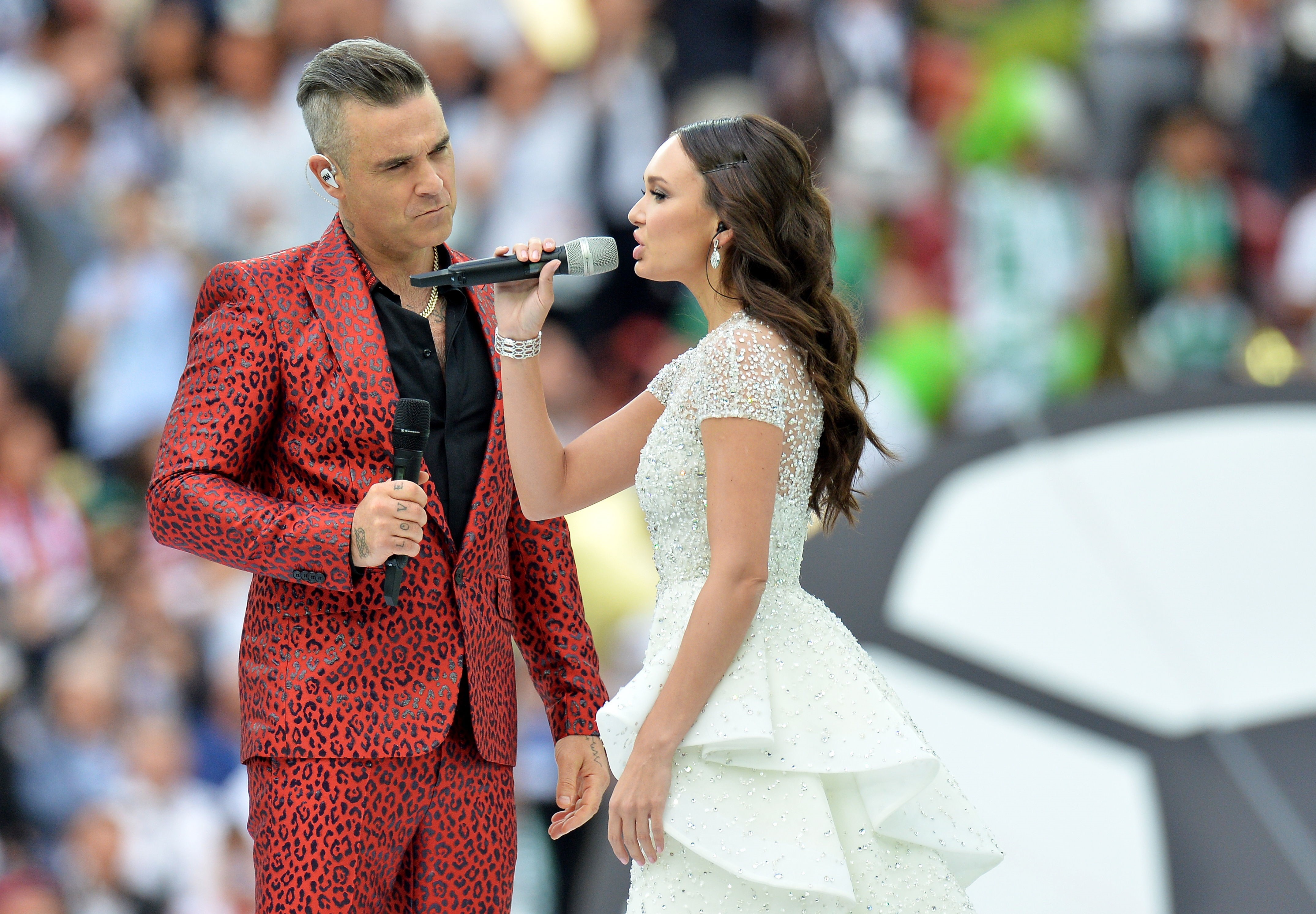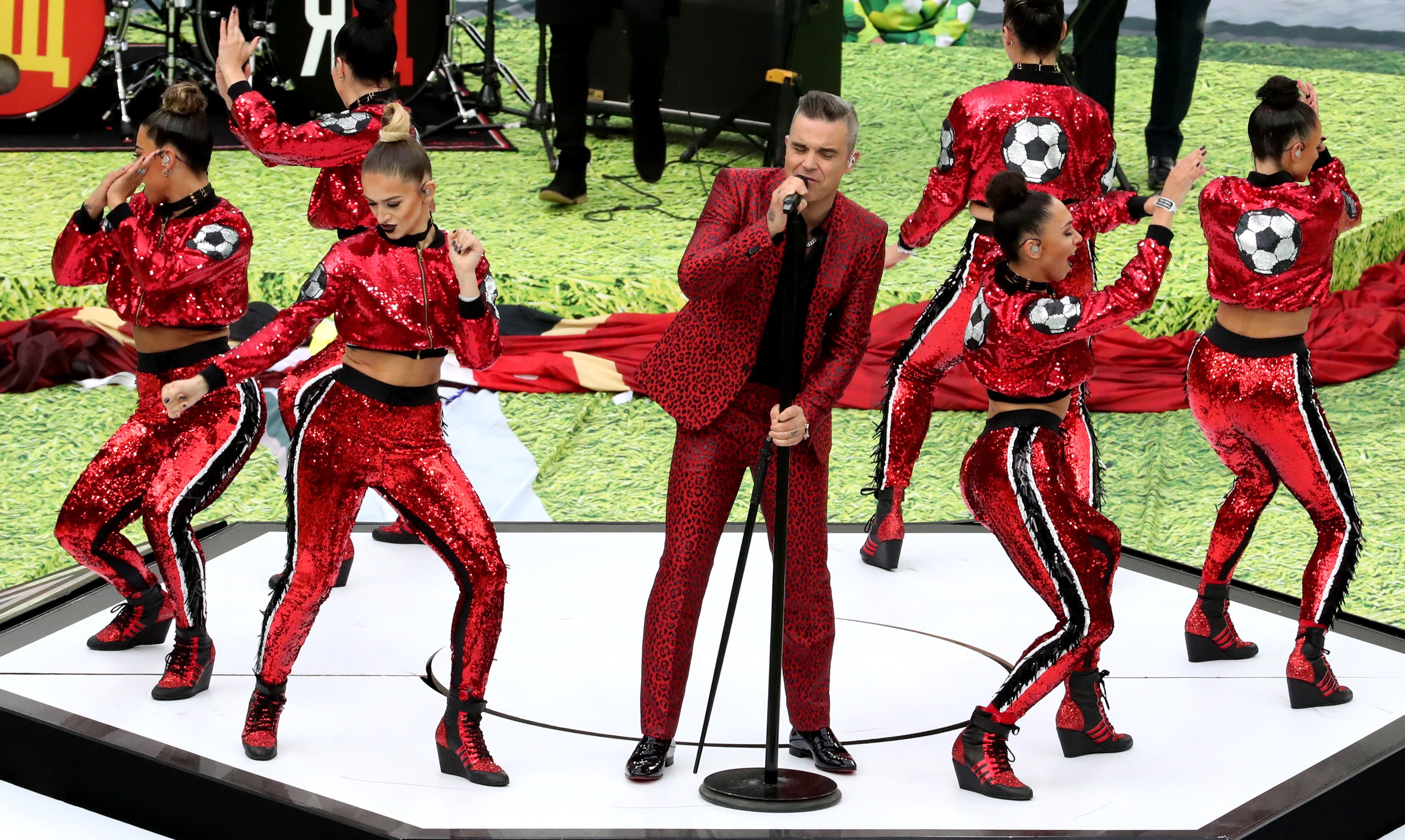 Williams animó la ceremonia inaugural y demostró que a sus 44 años todavía tiene energía para rato. El inglés cantó algunos de sus grandes hits como "Let Me Entertain You", "Feel", "Angels" y "Rock DJ".