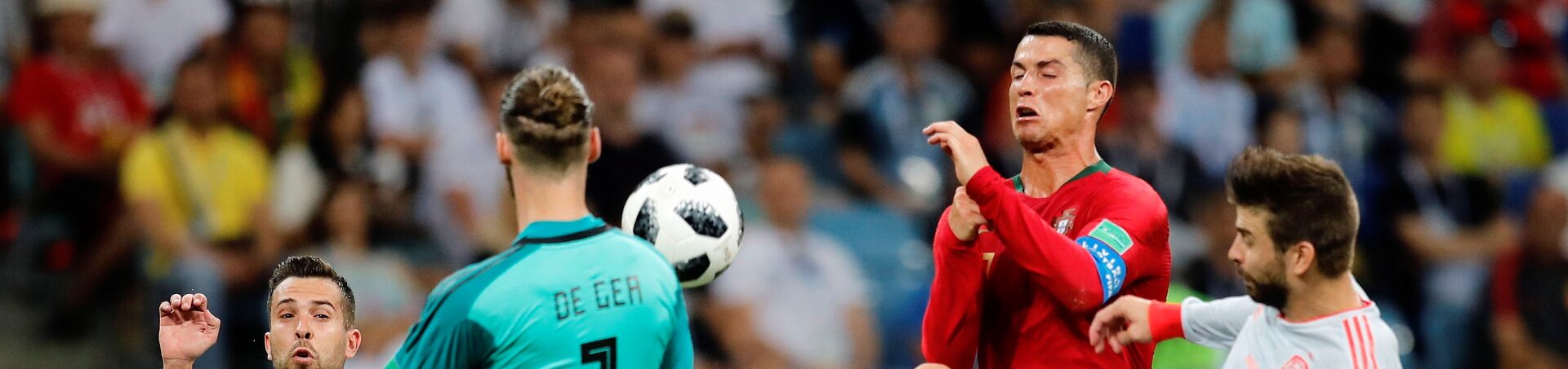 Cristiano es mucho Cristiano. El delantero del Real Madrid se ha encargado de amargar el debut de España en el Mundial de Rusia con un hat-trick, contando además para ello con la colaboración de David de Gea. El meta del Manchester United es un porterazo, sí, pero esta noche no estuvo nada fino: cantada en la acción del 2-1, dejando escapar la pelota de sus manos —en Portugal llamaron maos de manteiga a Iker Casillas, y el mismo calificativo se le puede aplicar al novio de Edurne—; terrible salida ante el propio Ronaldo, para que fuera Piqué quien se encargase de arreglar el desaguisado; y quedarse haciendo la estatua en el último gol de la noche en Sochi, la falta que Ronaldo clavó por toda la escuadra.