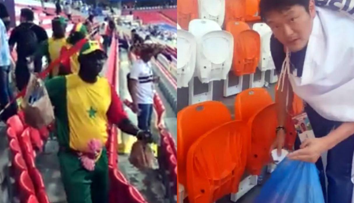 Aparte de dar colorido a las gradas rusas durante el Mundial que se está viviendo en el este de Europa, las aficiones de Senegal y Japón están dando una lección de civismo y limpieza que no suele verse muy a menudo, por no decir nunca, en los estadios del viejo continente. Durante sus respectivos encuentros y una vez finalizados los mismos, africanos y asiáticos recogieron la basura que ellos mismos habían generado en las gradas y una vez recogido todo salieron del estadio.