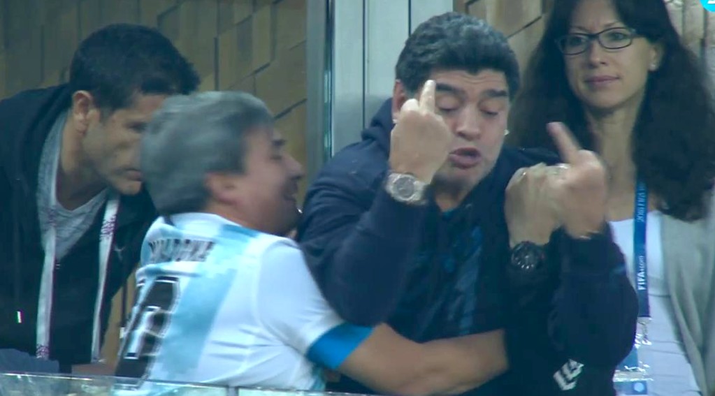 El show no se quedó ahí porque, en la otra cara de la moneda, luego dedicó una serie de peinetas a los seguidores nigerianos, mientras les llamaba "putos", con el tanto de Marcos Rojo, a los 86 minutos, que daba la clasificación a la Albiceleste.