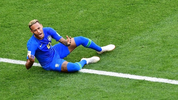 El jugador carioca recibió una entrada de un jugador de Serbia y acabó rodando por el suelo con un movimiento que no ha pasado desapercibido en Twitter.