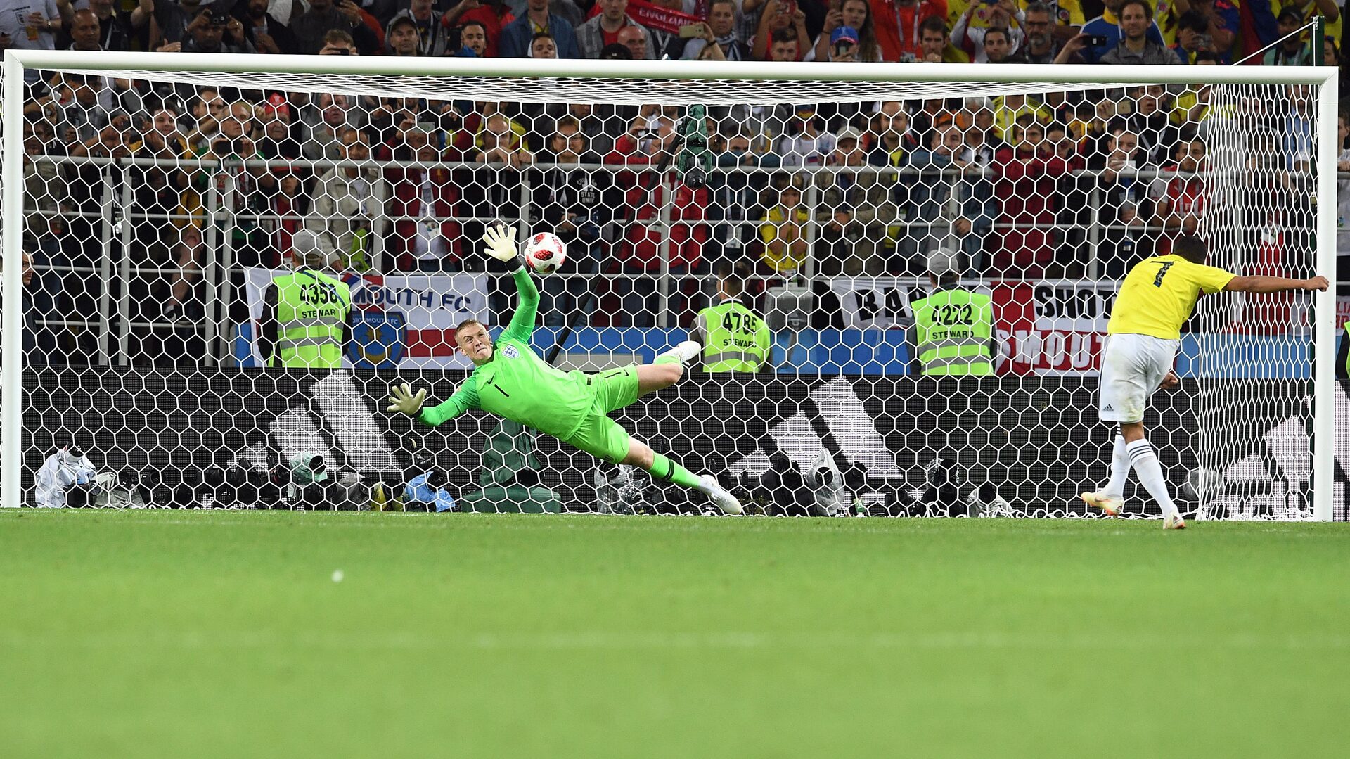 Penaltis: 1-0: gol de Falcao; 1-1: gol de Kane; 2-1: gol de Cuadrado; 2-2: gol de Rashford; 3-2: gol de Muriel; 3-2: Henderson y para Ospina; 3-2: Uribe al larguero; 3-3: gol de Trippier; 3-3: Bacca y para Pickford; 3-4: gol de Dier