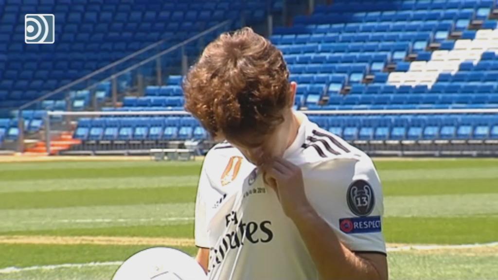 Florentino Pérez ha presentado a Odriozola como nuevo jugador del Real Madrid. Ha mostrado su satisfacción por vestir la camiseta merengue y ha dicho que no va a dejar escapar esta oportunidad.