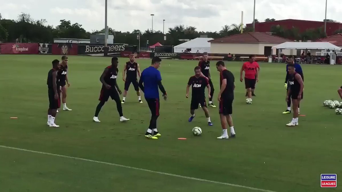 Los jugadores del United, objeto de mofa en las redes sociales por un rondo, en el entrenamiento previo al partido contra el Real Madrid, en el que no son capaces de dar más de tres pases seguidos.
