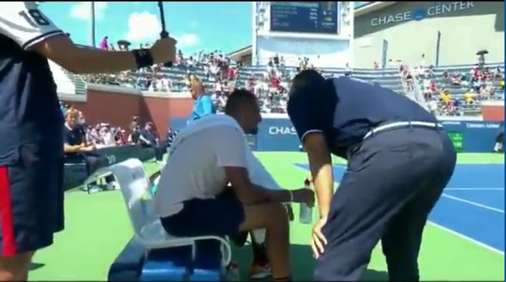Escándalo en el US Open. Otro más. Sin embargo, este no tiene precedentes. La insólita escena se produjo en el partido de segunda ronda entre Nick Kyrgios y Pierre Hugues Herbert. El partido transcurría por el segundo set y Kyrgios perdía por 4-6 y 0-3 cuando el juez de silla, Mohamed Lahyani, toma una decisión controvertida e ilegal y que está dando la vuelta al mundo. Baja de su sitio para motivar al polémico tenista australiano.
