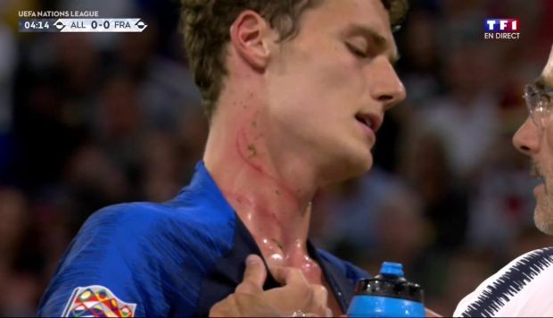acabó con el cuello marcado tras el pisotón que Rudiger le propinó queriendo o sin querer durante el duelo de la Liga de Naciones que acabó con 0-0.