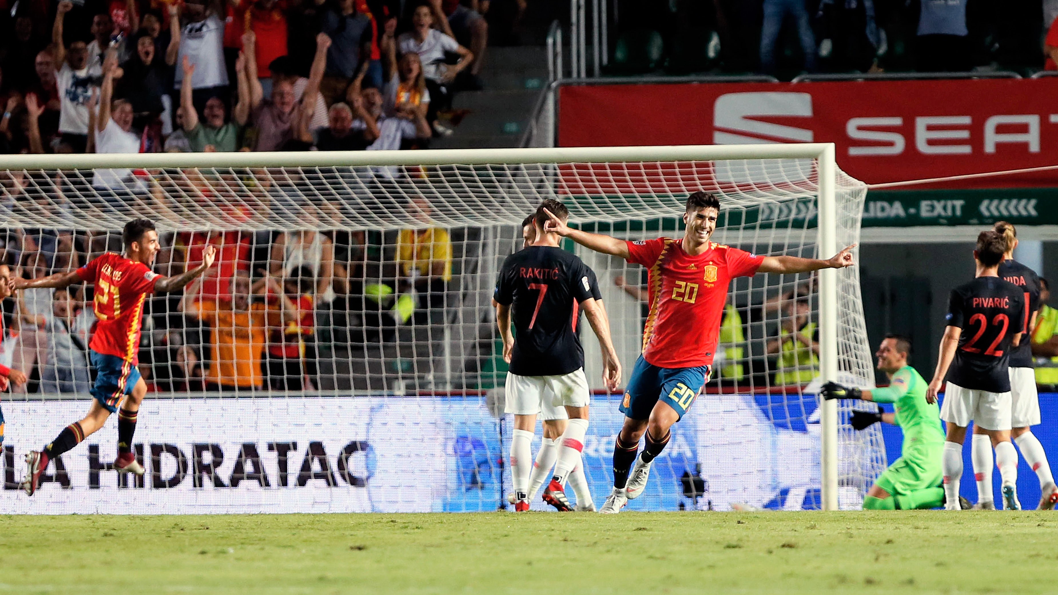 Rakitic y Santini tuvieron en sus botas el 0-1, pero lo que acabaría llegando fue el 1-0. Poco después de la lesión de Vrsaljko, fuera de combate a las primeras de cambio. A los 24 minutos, un gran centro de Carvajal con el exterior fue aprovechado por Saúl, en su llegada al primer palo, para conectar un gran testarazo y batir a Kalinic, estrenando así el marcador. El Martínez Valero estalló de júbilo con el tanto de su hijo predilecto y España respiró porque Croacia era superior hasta entonces. Pero el gol de Saúl cambió el guión y fue entonces cuando apareció Marco Asensio con sus dos goles: el primero tras aprovecharse de un clamoroso error de los balcánicos en defensa y el segundo, con un tremendo zurdazo desde fuera del área, sorprendiendo a Kalinic tras tocar la pelota en el larguero.