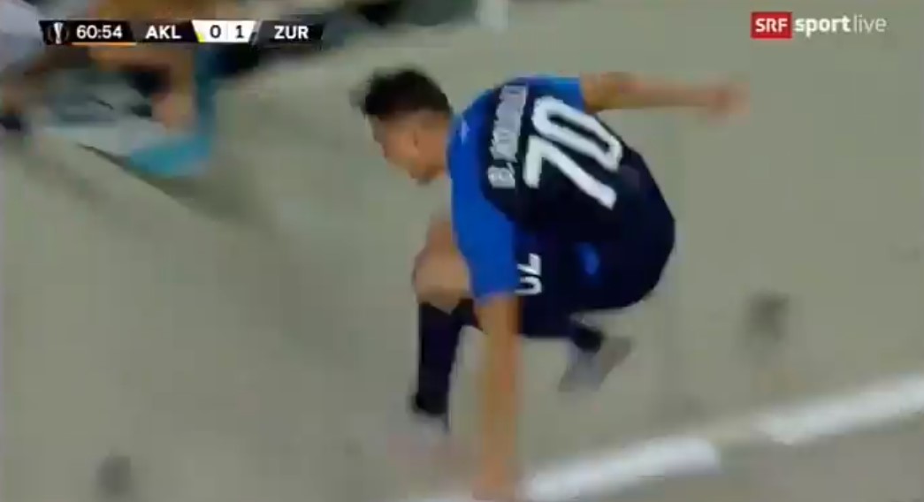 Benjamin Kololli, del Zurich, se precipitó al vacío en un foso del estadio del AEK Larnaca al celebrar el gol que les otorgaba la victoria. Afortunadamente el jugador salió ileso. Menudo susto.