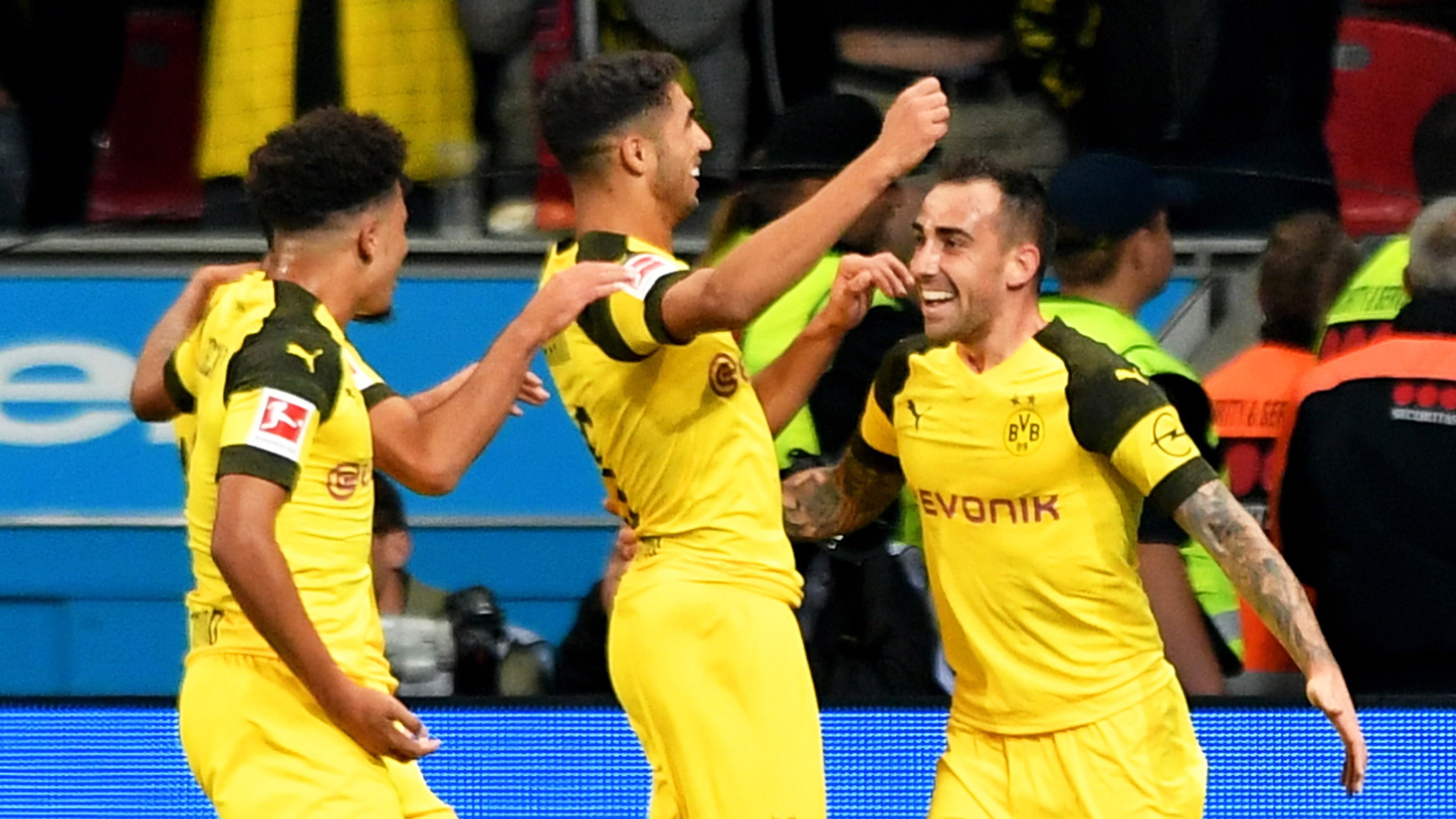 Un doblete de Paco Alcácer le dio la victoria a domicilio al Borussia Dortmund por 2-4 ante el Bayer Leverkusen lo que convierte al equipo del suizo Lucien Favre en nuevo líder de la Bundesliga. El Dortmund aprovechó así el pinchazo del Bayern, que perdió anoche por 2-0 ante el Hertha Berlín, y es ahora el único equipo imbatido en el torneo alemán.