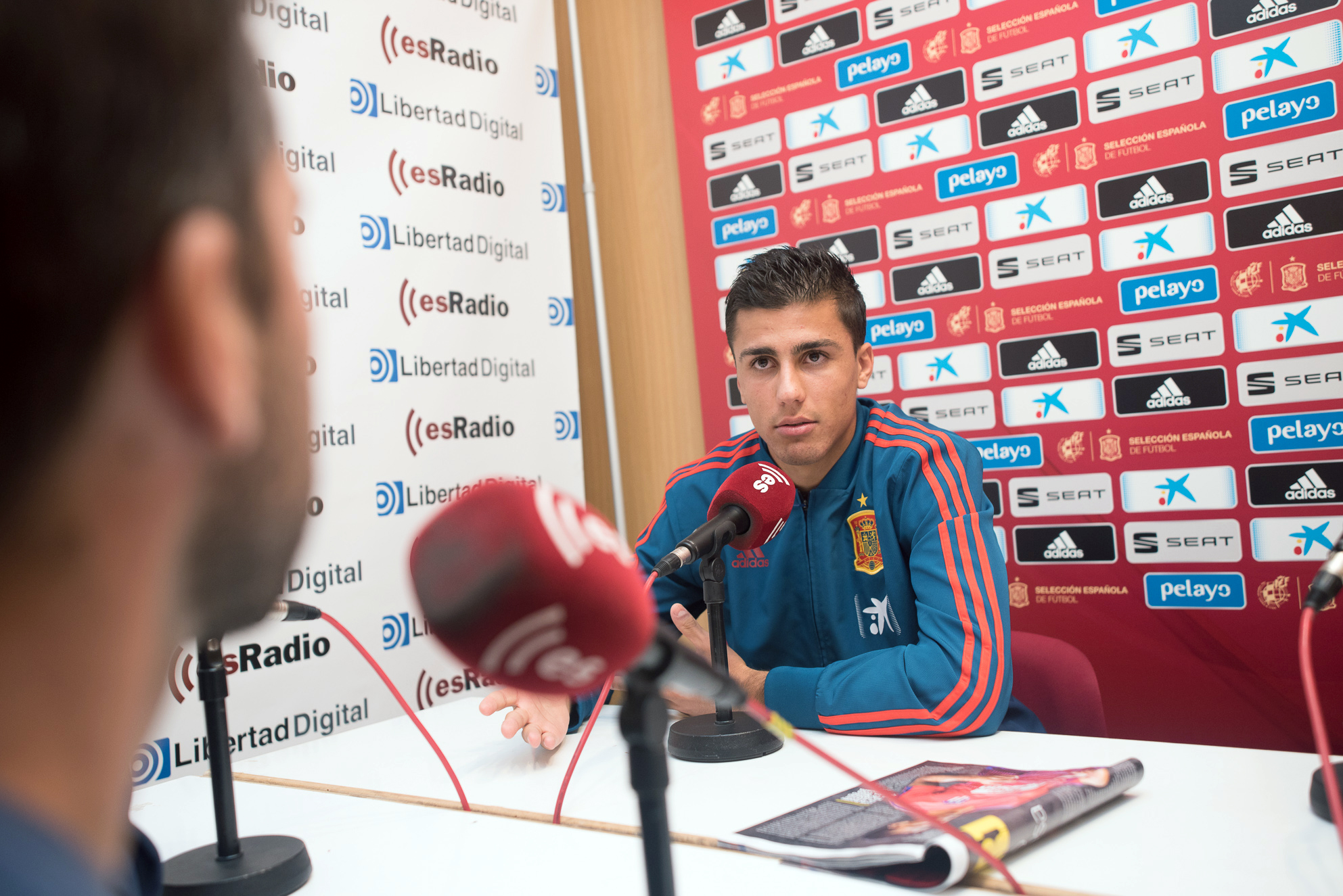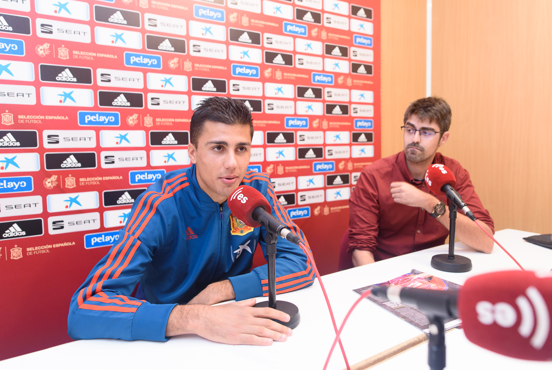 Rodrigo, jugador del Atlético de Madrid y de la Selección Española de Fútbol, respondiendo a las preguntas de Juanma Rodríguez.