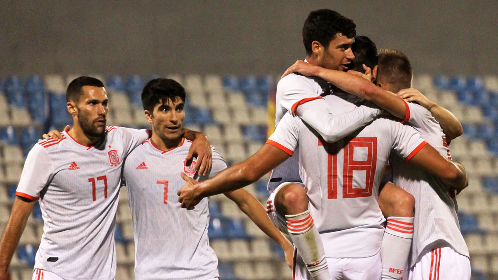 España, 7: Unai Simón, Palencia, Vallejo, Jorge Meré, Angeliño; Roca, Fabián Ruiz; Soler, Dani Olmo (Fornals, min. 58), Oyarzabal (Pedraza, min. 73); y Rafa Mir (Mayoral, min. 67).