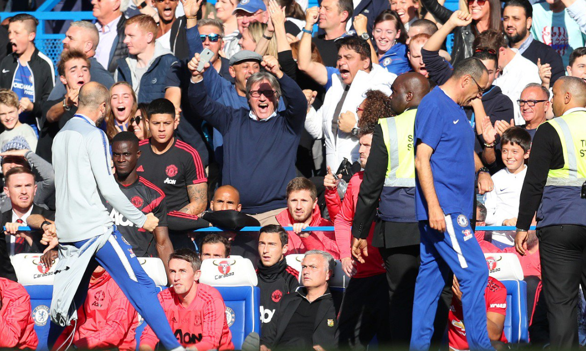 Tras el tanto del empate a 2, el técnico asistente de Maurizio Sarri, Marco Ianni, celebró de forma efusiva el agónico tanto en la cara de Mourinho, que entró en cólera. El luso se levantó como un resorte y se fue a por Ianni. La rápida intervención de los miembros de seguridad del estadio y de Sergio Romero y Eric Bailly, que se encontraban en el banquillo, evitó males mayores.
