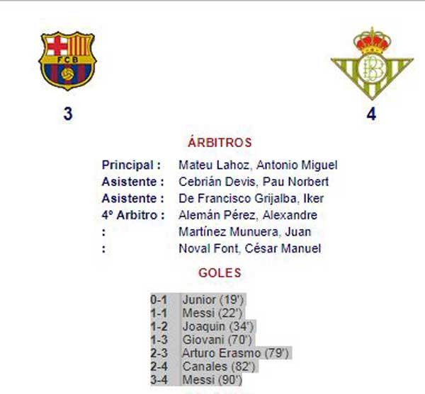 En el partido Barcelona-Betis que acabó 3-4 para el equipo bético, Mateu redactó de manera equivocada el acta final y le dio un gol a Messi que nunca existió. El argentino sí marcó, pero no fue el 1-1 que aparece en el registro del árbitro sino el 1-2.
