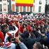 24 horas antes de la final en el Bernabéu ante Boca, la hinchada del equipo millonario ha mostrado sus colores y sus cánticos en el centro de la capital de España.