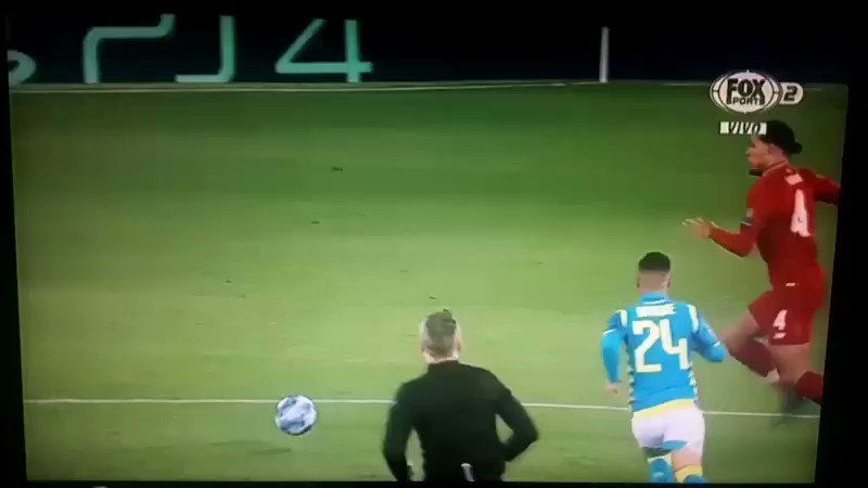 El jugador del Liverpool no midió bien y casi se lleva por delante la pierna del delantero del Nápoles.