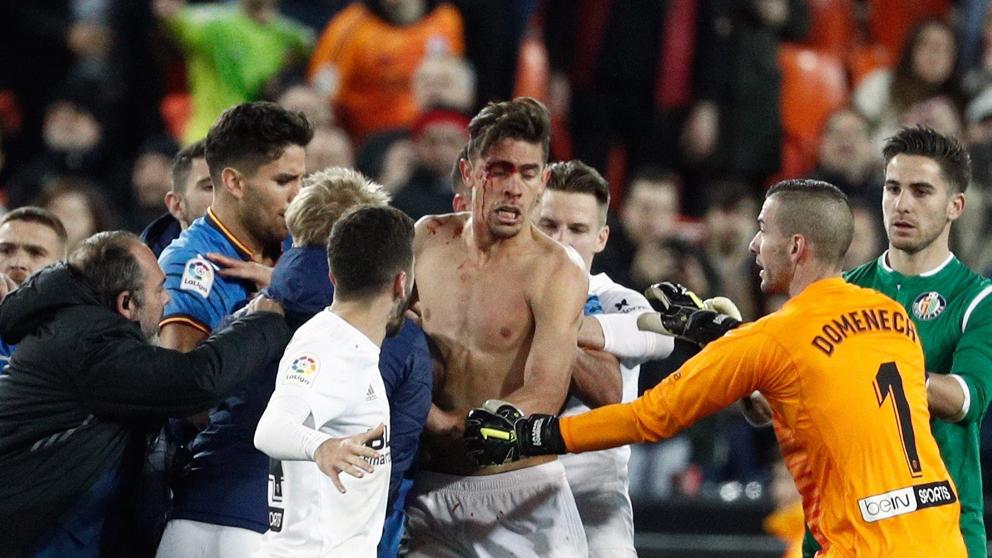 El acta del encuentro recogió expulsiones, agresiones e insultos una vez acabado el partido: Mouctar Diakhaby, del Valencia, y Bruno González, Damián Suárez y Jaime Mata, del Getafe, estaban en el ajo.