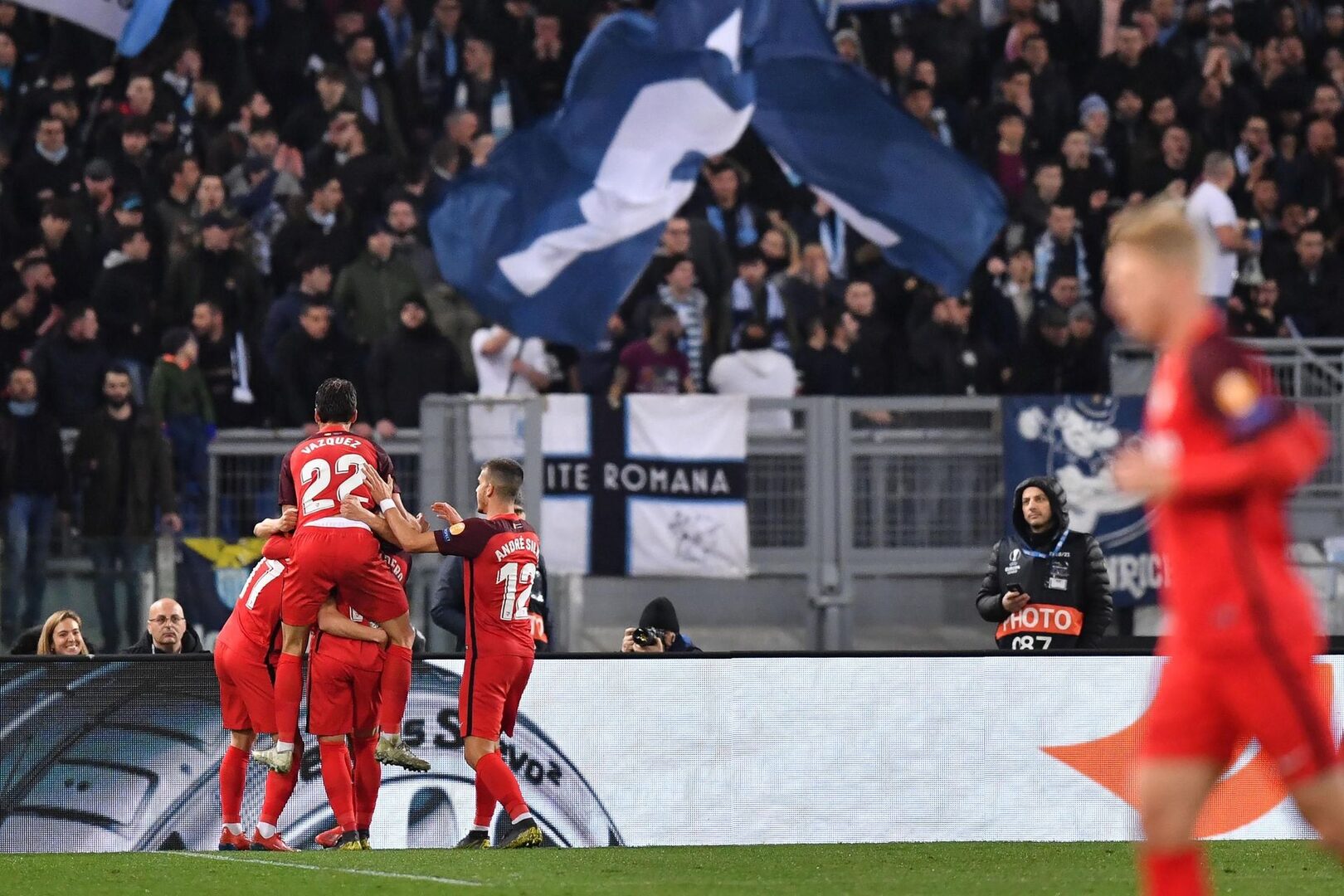 Los sevillistas, agobiados por momentos, sólo pudieron respirar cuando a los 71 minutos fue expulsado con roja directa Adam Marusic, lo que igualó las fuerzas. A partir de ahí, los italianos bajaron los brazos y casi asumieron la derrota y la eliminación, sobre todo cuando Sarabia, tras un buen pase interior al área de Jesús Navas, marcó el 2-0 a doce minutos del final y sentenció el pase del Sevilla a octavos.