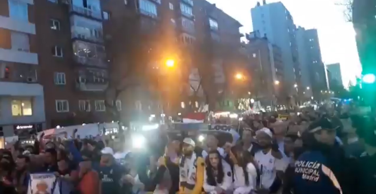 Miles de seguidores madridistas se concentraron en la Plaza Sagrados Corazones, a pocos metros del Santiago Bernabéu, dos horas antes del clásico copero contra el Barcelona.