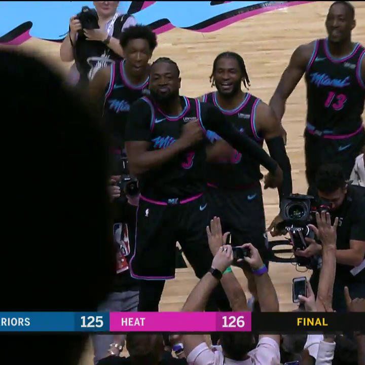 Dwyane Wade, que se retirará cuando acabe la temporada, anotó la canasta ganadora en el partido entre los Miami Heat y los Golden State Warriors. Miami podría aún entrar en los playoff.