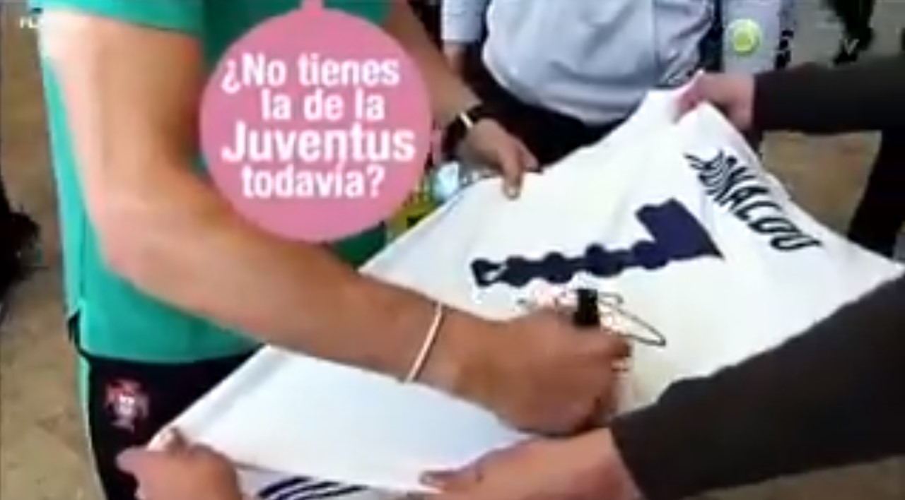 Las cámaras de Deportes Cuatro captaron en la concentración de la selección portuguesa al astro luso bromeando con un aficionado mientras le firmaba la camiseta.