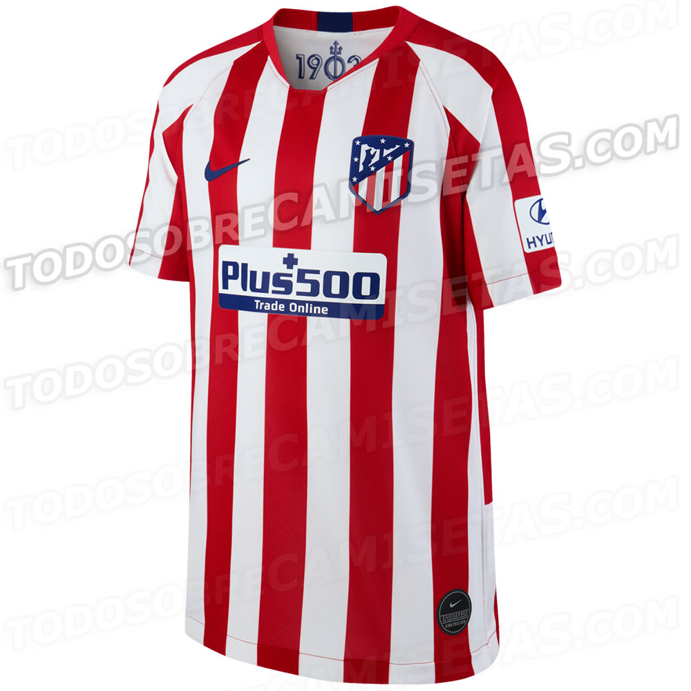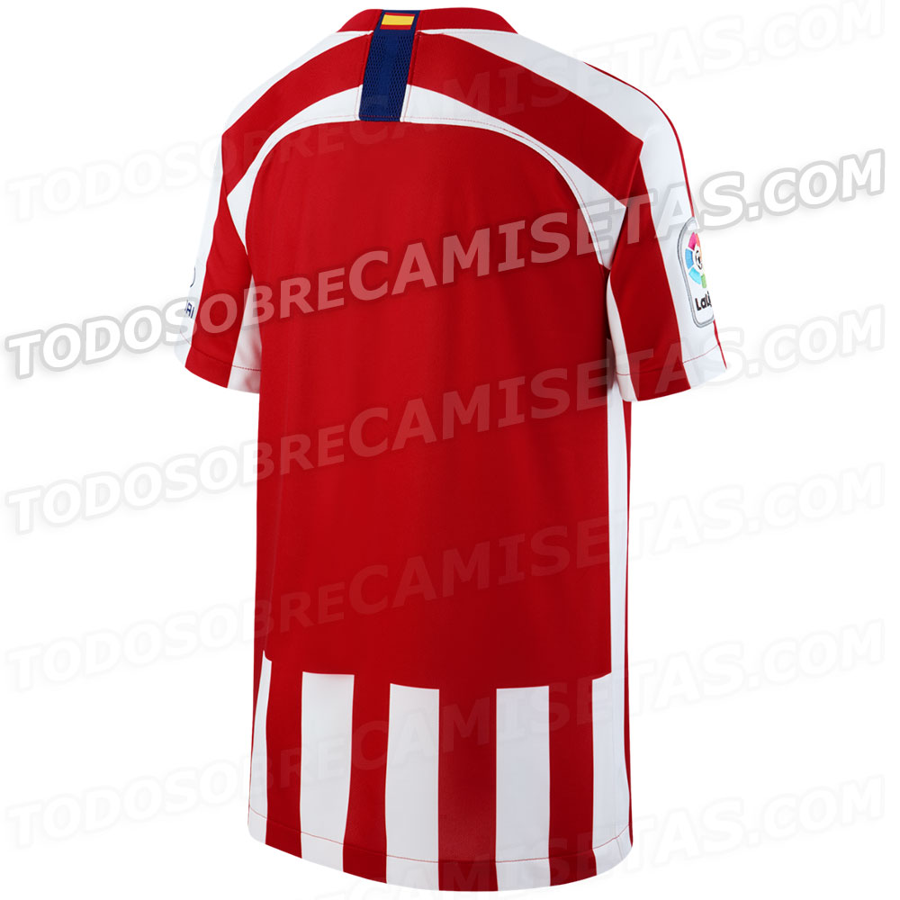 El Atleti recupera sus colores tradicionales, eliminando cualquier tipo de ribete o detalle en azul. Rayas blancas y rojas con una parte trasera que recuerda a antaño. Además, incluye el año de fundación del club en el cuello.