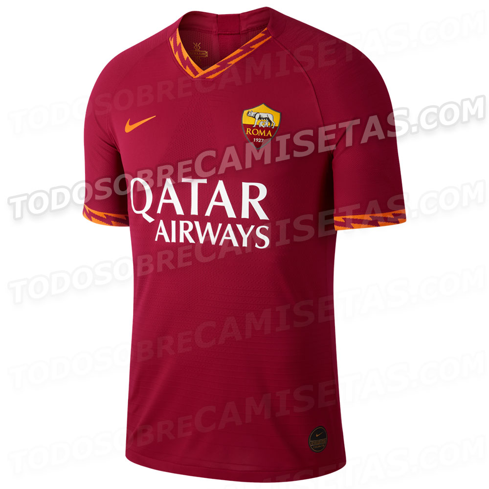 Así será la nueva casaca de la Roma. El único cambio destacable es la inclusión de unos rayos en el cuello y mangas que recuerdan a los adornos que lucían los romanos en sus escudos.