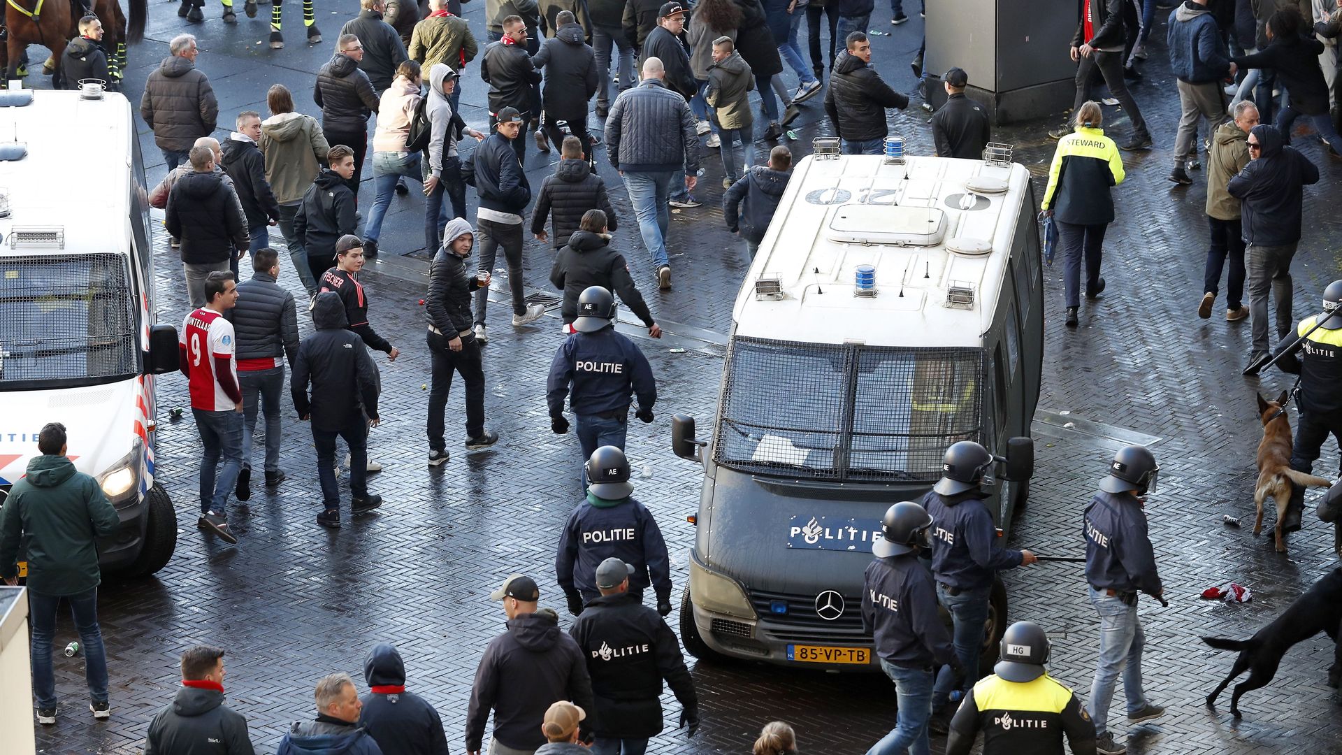 La actuación policial comenzó en la parada de metro del Johan Cruyff Arena, donde un grupo de 46 aficionados fue identificado como potenciales alborotadores, en trabajo conjunto con las fuerzas policiales italianas. Un segundo grupo de 61 fue retenido y con nuevas detenciones cerca del estadio.