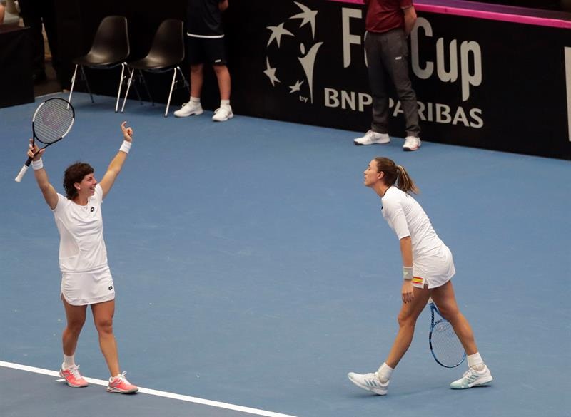 Pero en ambas jornadas apareció Carla Suárez. Remontó primero el sábado ante Van Uytvanck y el domingo, de nuevo, Suárez apareció al rescate de las españolas con un 2-1 adverso en el marcador y sumó su undécima victoria individual en sus doce últimos partidos con la selección.