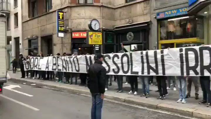 Los ultras entonaron cánticos fascistas y lucieron la pancarta "Honor a Mussolini" en la plaza Loreto de Milán, el lugar donde el cadáver del dictador fue colgado en público tras su muerte en 1945.