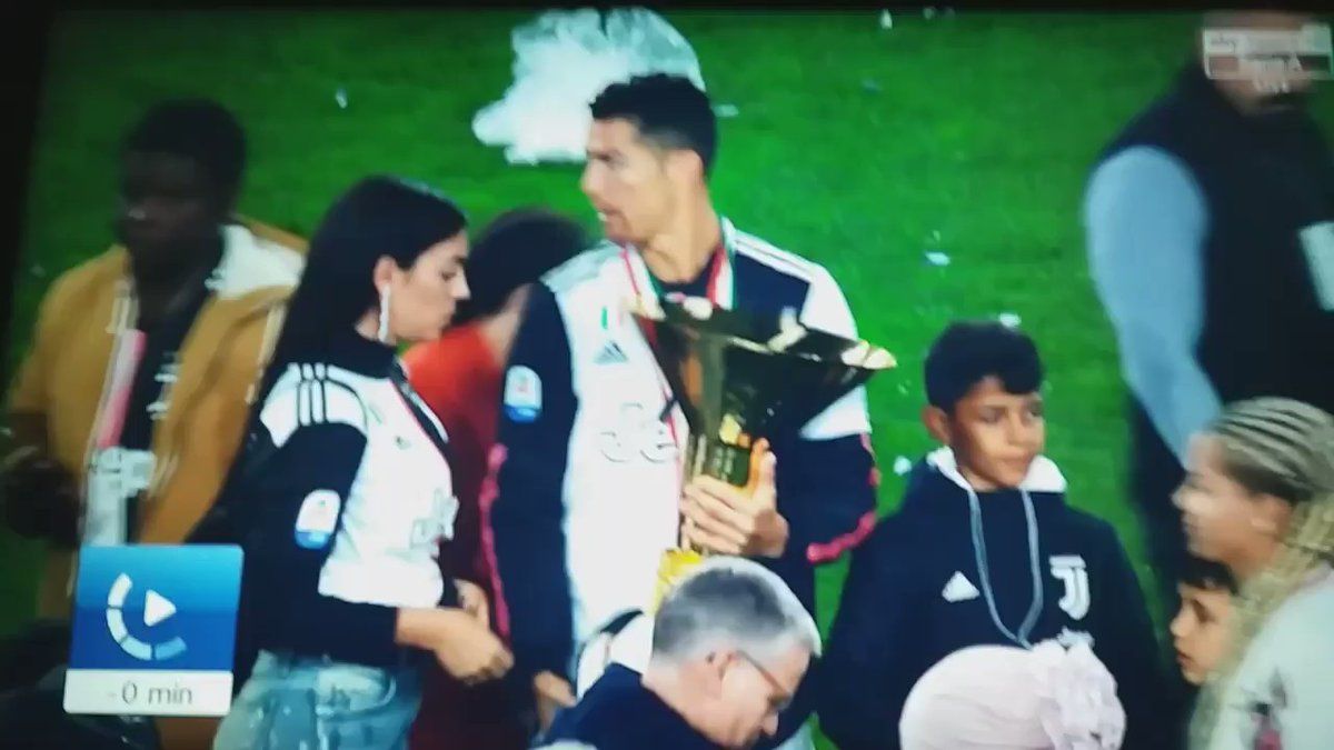 Cristiano golpea sin querer a su hijo con el trofeo de la liga italiana