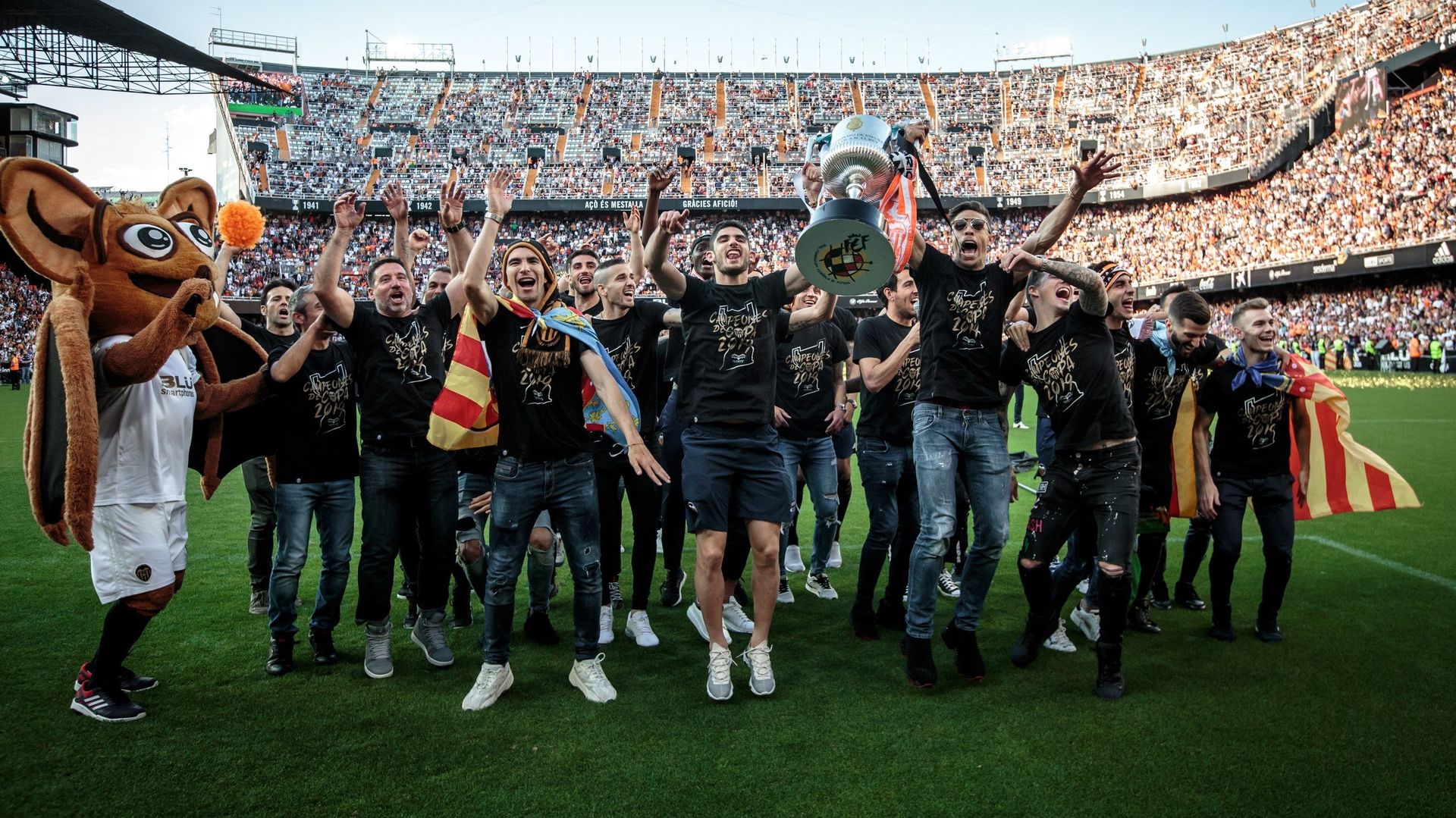 El estadio de Mestalla se quedó pequeño este domingo para albergar la gran fiesta de celebración del Valencia con sus aficionados tras ganar la Copa del Rey ante el Barcelona (1-2) en el año del centenario de un club que no festejaba desde hacía once la consecución de un título.