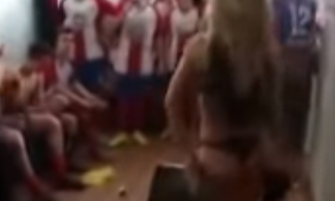 Bochornosa celebración del equipo del Alto Ampurdán, Girona. Lograron el ascenso a Segunda Catalana. En el vestuario estaban los jugadores, miembros del club e incluso familiares.