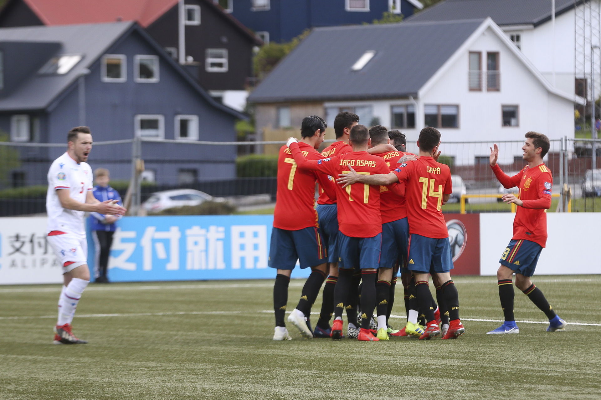 Siempre marcó Islas Feroe a España en sus dos enfrentamientos previos y no falló en el tercero. En una de sus pocas llegadas, a balón parado, el cabezazo al primer palo de Færø lo remató a la red Olsen de espaldas a la portería desviando ligeramente el balón. No hubo opciones para la esperanza en medio de la fiesta local. Tres minutos después, Isco apareció.