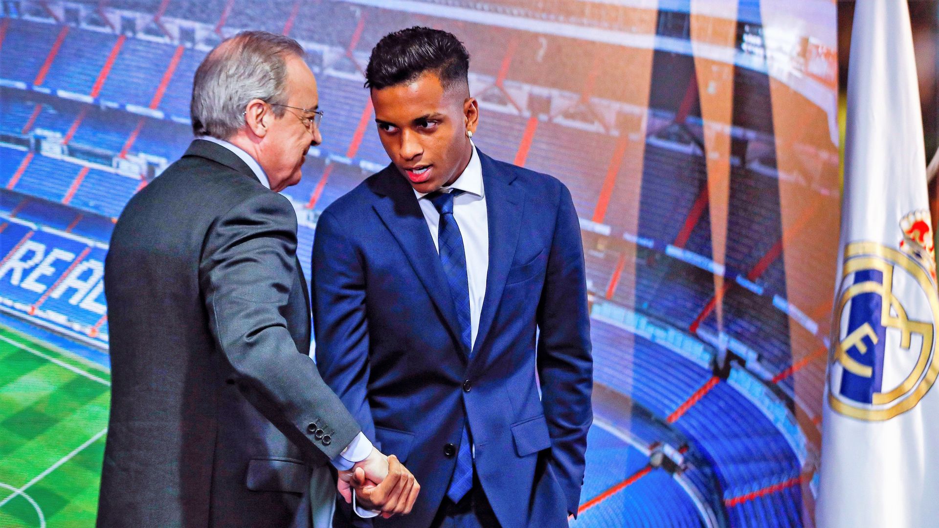 Por su parte, Florentino Pérez calificaba a Rodrygo como "uno de los jóvenes prodigios" que marcarán el "presente y futuro" del fútbol, y en la presentación del delantero quiso destacar el "crecimiento espectacular" de un jugador de 18 años. "Nuestra estrategia es y ha sido la búsqueda del talento emergente, pasa por incorporar a jóvenes con un presente y futuro extraordinario, y que sueñan con marcar una época en el Real Madrid. Llega uno de estos jóvenes prodigios, un futbolista que ya provoca la admiración por su juego, su manera de entender el fútbol y su trayectoria, a pesar de su juventud", dijo en el discurso de bienvenida el máximo mandatario del club madrileño.