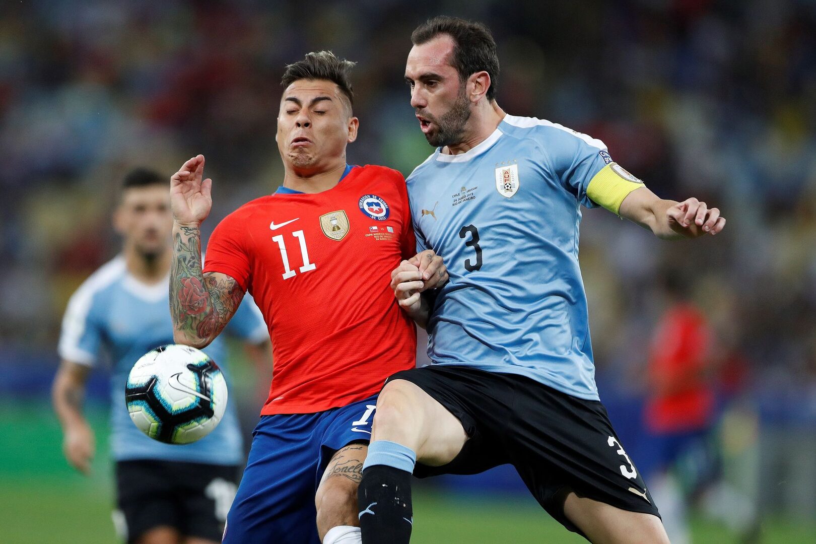 Un gol de Edinson Cavani, en el minuto 82, resolvió un tenso encuentro disputado en Maracaná entre Uruguay y Chile que da a la Celeste el primer puesto del Grupo C de la Copa América de Brasil 2019.