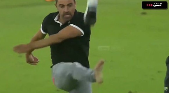 Xavi Hernández debutó con el Al Sadd en la Champions Asiática. Se enfrentaban al Lekhwiya y, tras no señalizarse un penalti a su favor, el técnico catalán protestó airadamente y soltó una patada al aire.