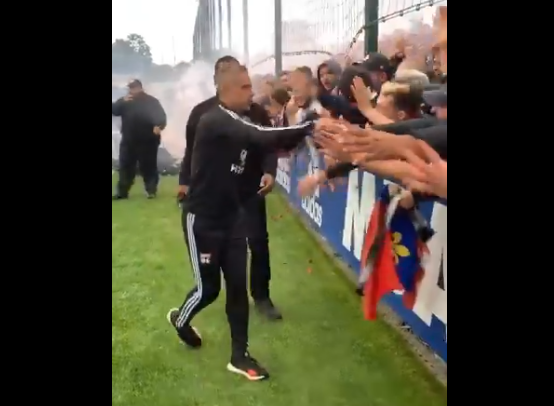 Sylvinho, ex de Barcelona y Celta, sabedor del mal momento que atraviesa su equipo siendo 12º en la Ligue 1, decidió ir a la valla donde estaban los ultras de su equipo para saludar a los mismo de manera efusiva.
