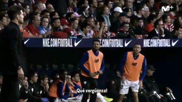 Aduriz y De Marcos a Simeone en pleno Atlético-Athletic: "¡Qué vergüenza!". Todo por lanzar la falta y no devolver otra vez el balón. Movistar captó las imágenes.