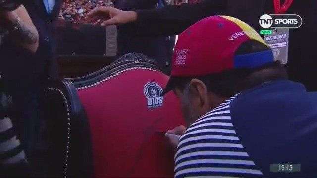 El Pelusa ejerce ahora de entrenador de Gimnasia de la Plata con el objetivo de sacar a su equipo del descenso y en su visita al Estadio Marcelo Bielsa de Newell´s, la afición local y el club le trataron casi como a un jefe de estado. Incluso le pusieron un trono para que pudiese ver el partido y dirigir a su equipo desde la banda.