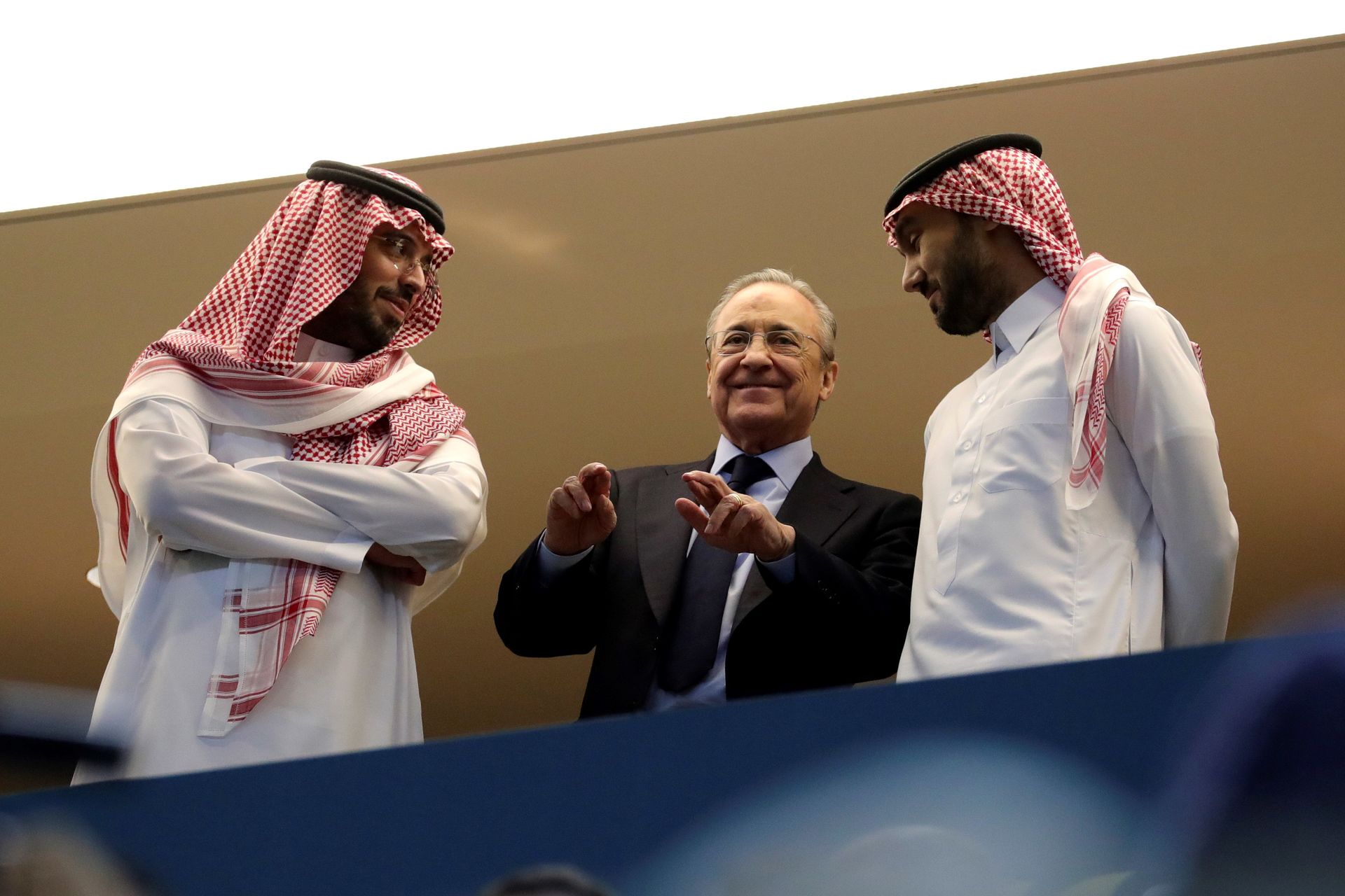 El presidente madridista se encontraba en el estadio King Abdullah junto a la presidenta de la Comunidad de Madrid, Isabel Díaz Ayuso.