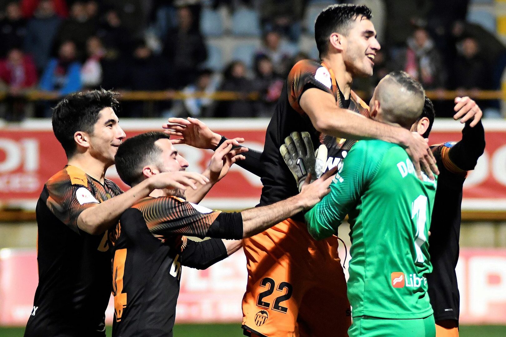 El Valencia ha sufrido en un mal partido, pero ha logrado en los penaltis el pase a cuartos de final de la Copa del Rey en el Reino de León, mientras que el Granada se ha abonado de nuevo al triunfo en la prórroga (2-3) en Badajoz, en una jornada más tranquila este miércoles para Villarreal y Real Sociedad.