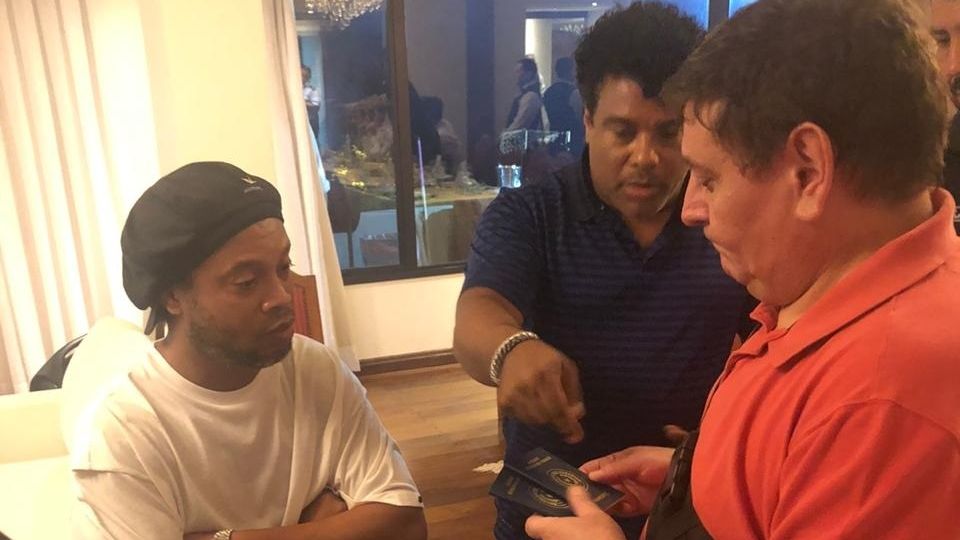 ¡Ronaldinho, detenido en Paraguay! El astro brasileño fue denunciado, junto a su hermano, por supuesta adulteración de documentos falsos. Está bajo custodia policial en su hotel y este jueves se tendrá que presentar a declarar. pic.twitter.com/oaW19BY73A