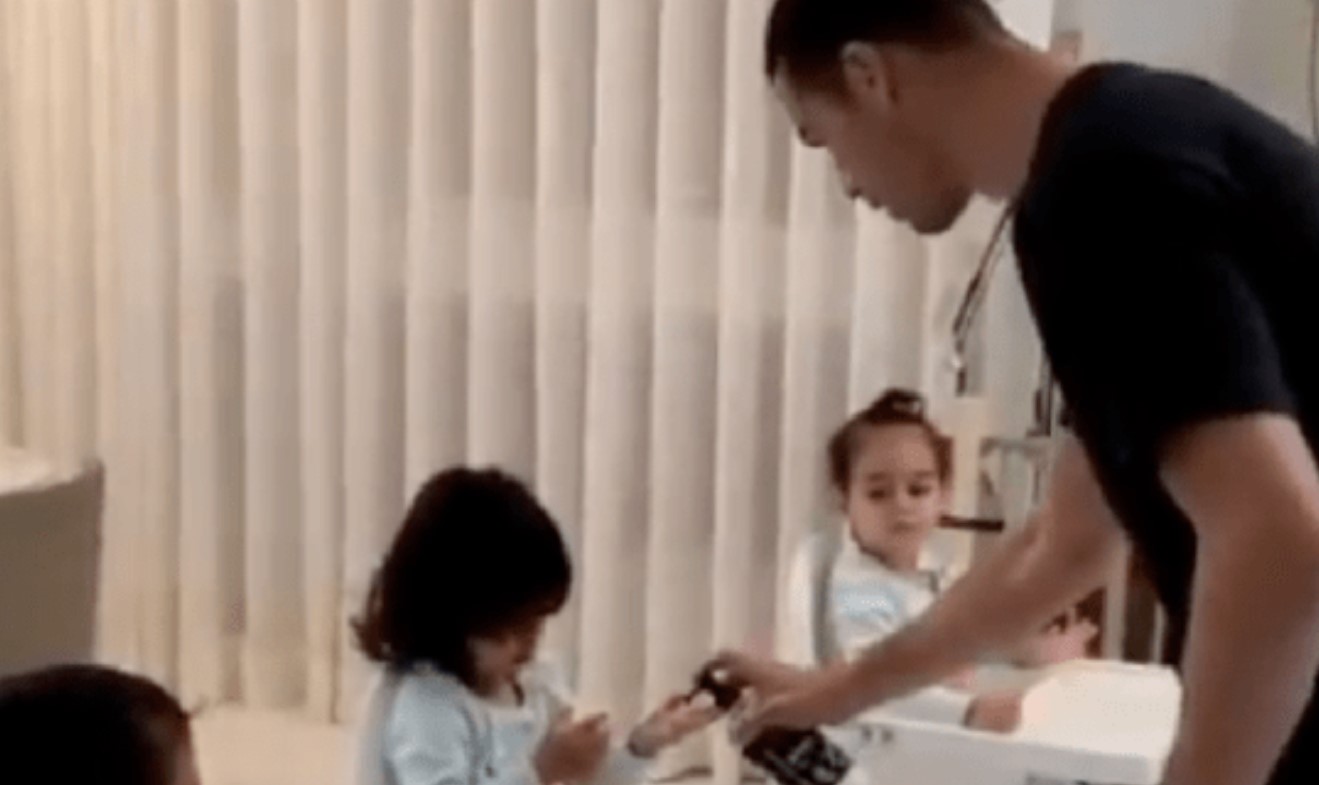 Quien no aparece en el vídeo es el hijo mayor del futbolista, Cris Junior, de nueve años de edad.