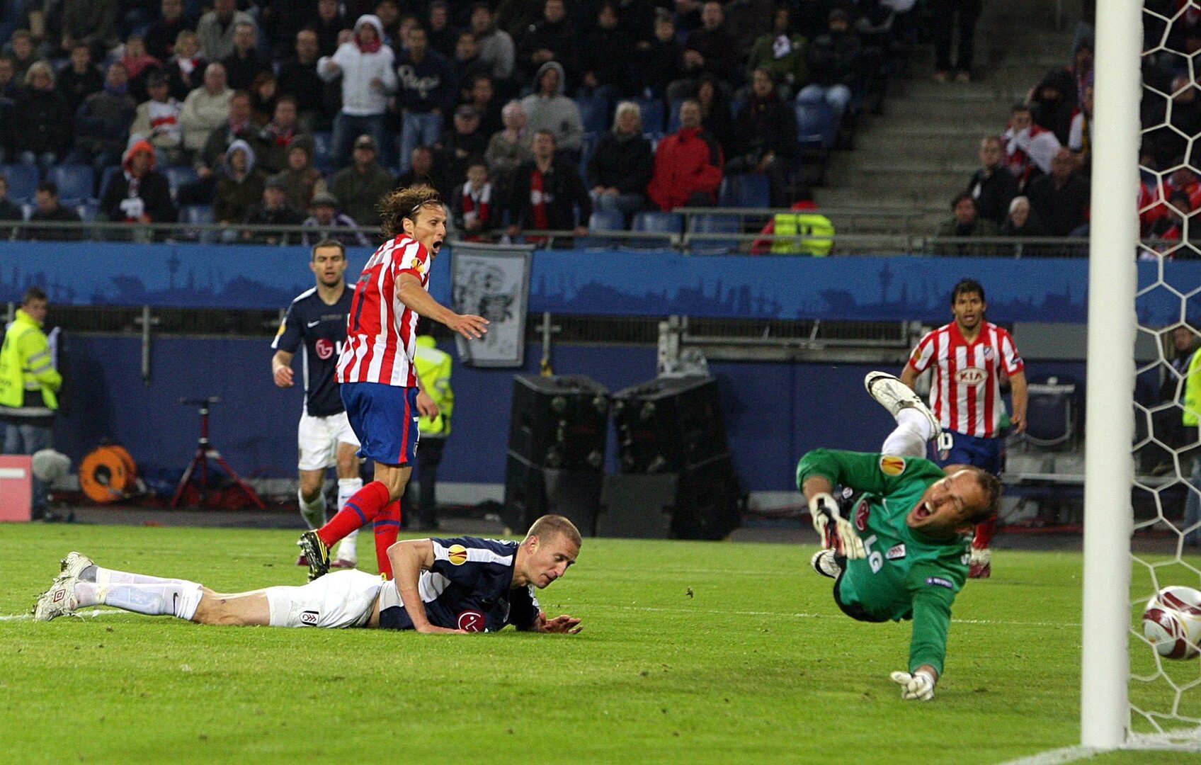 Mucho había luchado ese Atlético para que el torneo no fuera una losa. Rebotado de la Champions donde el papel había sido poco menos que lamentable. No había ganado el equipo, primero de Abel, luego de Quique, ningún partido de la liguilla y al Apoel Nicosia sólo le había sacado dos empates. Derrotas en Oporto, en Londres ante el Chelsea, en el propio Calderón ante los portugueses y un empate en casa ante los ingleses. Pobre recorrido para un club que deambulaba en Liga, pero que hizo de las Copas, a partir de enero, su ilusión aquel año. En la de España llegó a la final, perdida ante el Sevilla una semana después de esta noche feliz. En Europa caminó tambaleándose hasta el último día pero llegó a la meta.