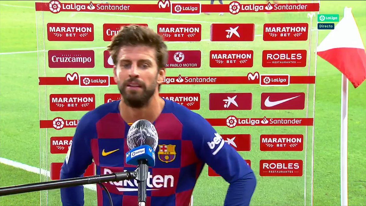Piqué señaló que se le han "escapado dos puntos" porque tuvieron mas ocasiones que el Sevilla y "el control del partido". "Hemos generado, pero no nos ha dado para ganar. Ganar esta Liga va a ser muy difícil, se van a perder pocos puntos. Vistas las dos primeras jornadas va a ser difícil que el Madrid pierda puntos, va a ser difícil ganar la liga, pero lo vamos a intentar", reiteró.