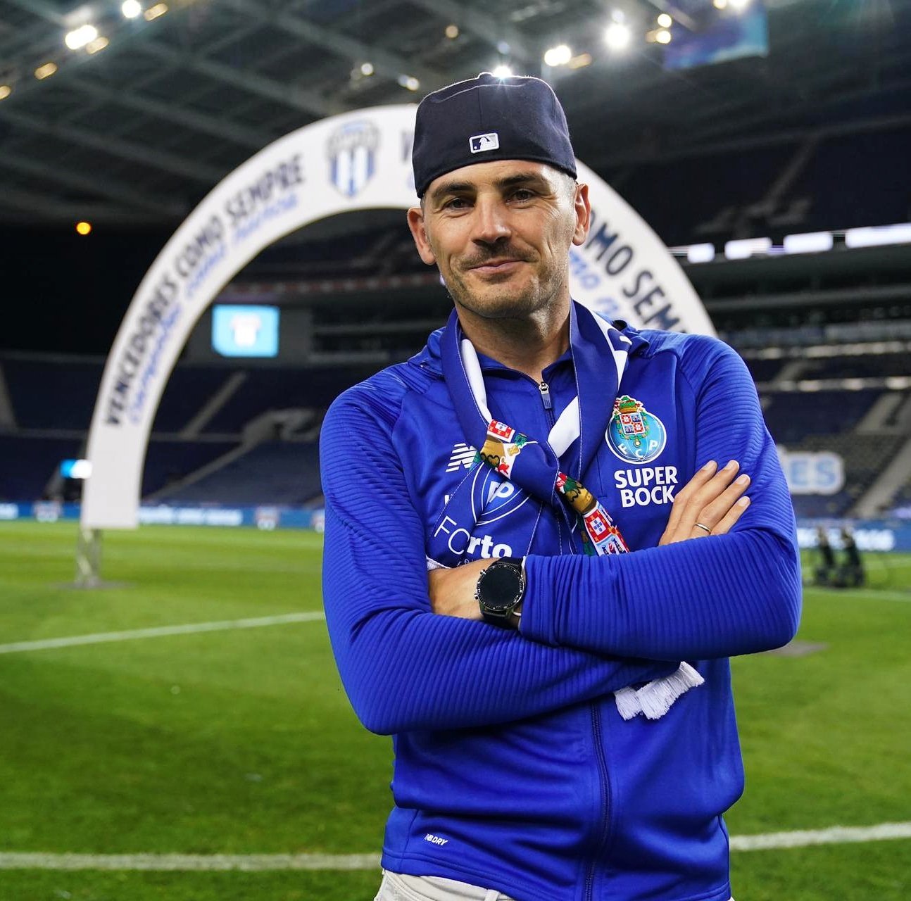 Iker Casillas volvió a pisar el césped del Estadio do Dragao más de 14 meses después del infarto que le llevó a colgar los guantes para celebrar la 29ª liga del Oporto junto al resto de jugadores blanquiazules.
