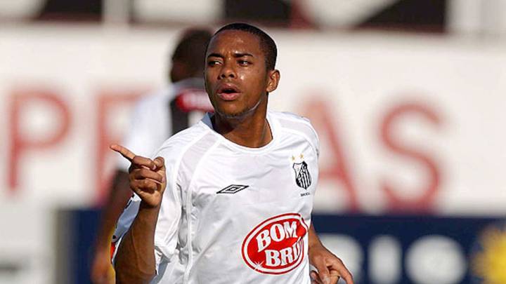 Robinho se presentó al fútbol mundial en el Santos del 2002, un equipo en el que también jugaba Diego Ribas y con el que conquistó las ligas brasileñas de ese mismo año y de 2004.