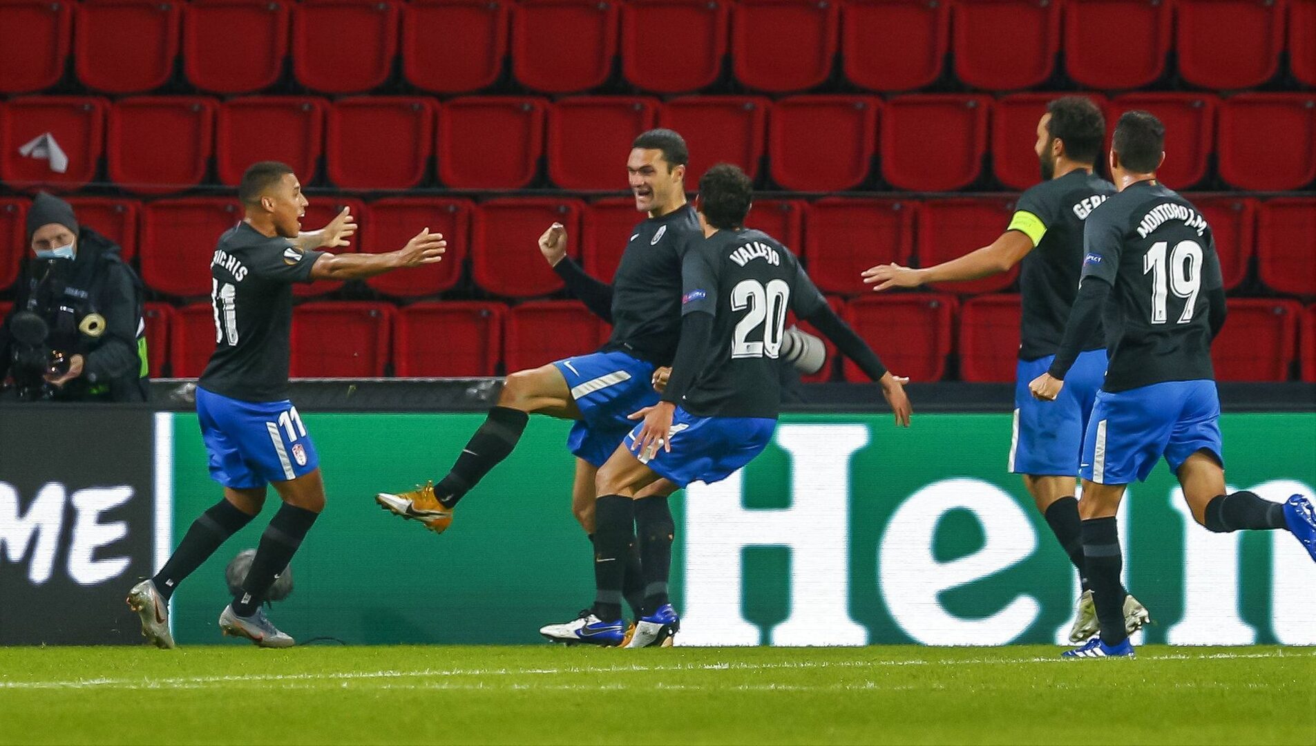 La única mala noticia para el brillante estreno en la fase de grupos del Granada fue la lesión a la media hora de juego del francés Maxime Gonalons, que se marchó muy dolorido de una rodilla tras un choque con un jugador local.