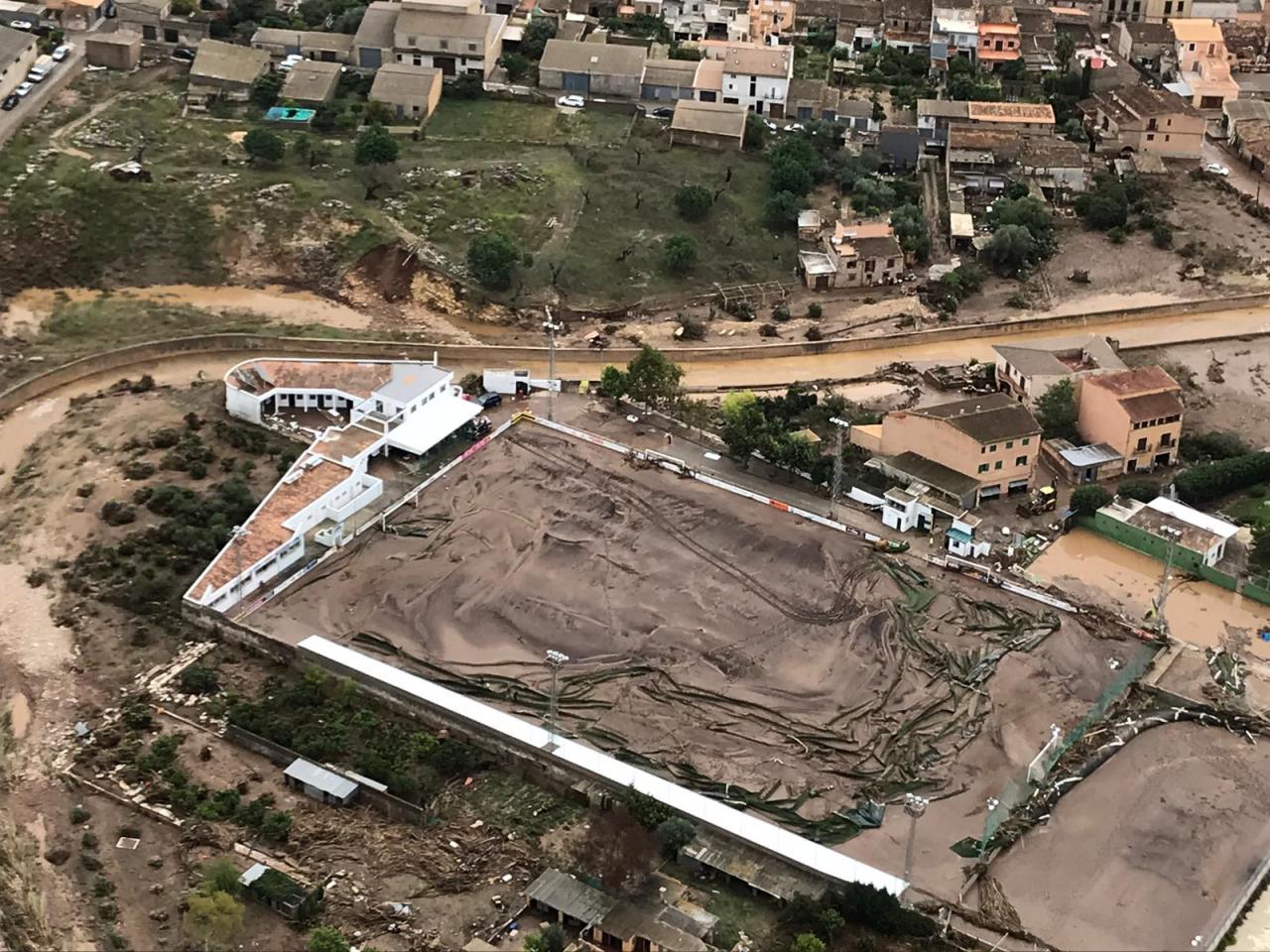 El campo de fútbol del Cardassar, el equipo de Sant Llorenç, no escapó de la tragedia. Es Moleter, que así se llama, quedó arrasado por la torrentada, dejando una impactante imagen que se hizo viral al instante. Era un desastre del que sería difícil reponerse. Para un equipo que entonces se encontraba en la Primera Regional de Mallorca (dos categorías por debajo de la Tercera División), podía suponer incluso el fin.